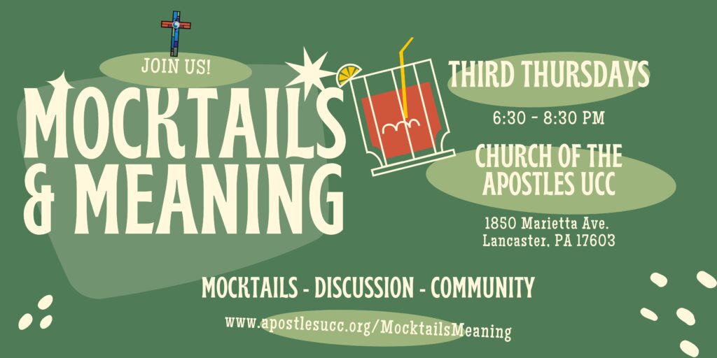 Church of the Apostles will be hosting “Mocktails & Meaning™”, a social group forming to discuss current topics while sipping on delicious mocktails. The purpose of this group is to provide an opportunity for the community to discuss current topics of interest, both in terms of learning more about them and also considering the different nuances of each topic in terms of who benefits and who might be hurt by the current system/process.